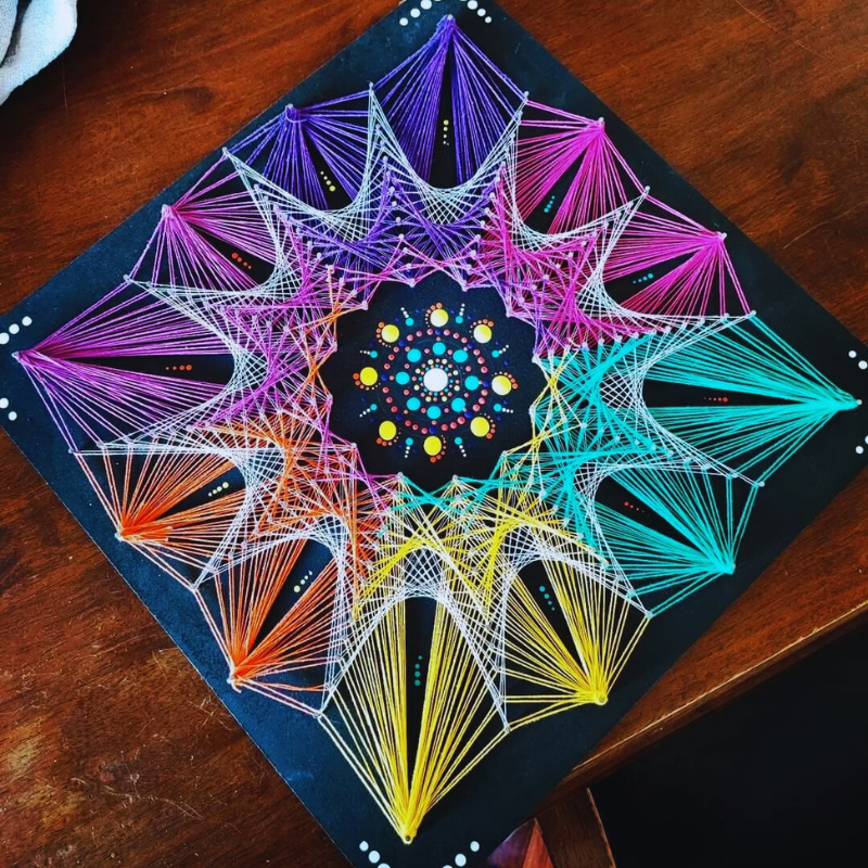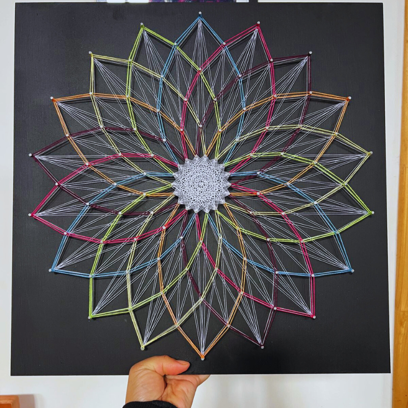 "Hola!! El arte de hilomandala ha sido una gran experiencia, es súper terapéutico, ayuda a enfocarme, me libera de la ansiedad y el resultado me encanta y me hace sentir muy satisfecho."